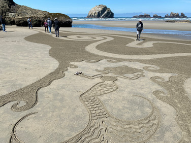 Each morning it was fascinating to discover where our clean slate of sand would be. The negative low tides limited our options so we located each labyrinth on the north side of Cathedral Rock. As the tides erased the path from the previous day it left us with different terrain each morning. Paths inevitably emerged between the surf and the cliffs. The art theme changed daily but it was always guided by nature and the offerings of the ocean.