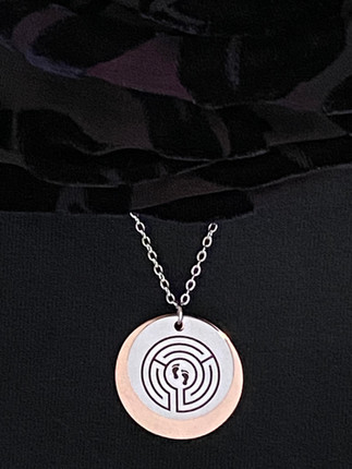 You have been asking and we finally have them, new labyrinth necklaces. Each necklace features our labyrinth logo engraved on a stainless steel pendant and backed by a larger stainless steel pendant of in a choice of gold or rose-gold. A 20" stainless steel chain is included. A single stainless steel pendant is also available but we think the double circle combination highlights the labyrinth. The stainless steel is durable and does not tarnish in our climate.