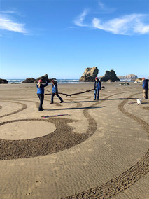 Bear joined the Circles Team in May of 2019. He got his start just like the rest of us by volunteering to groom the sand. He showed up for every draw along with his friend, Bethe Patrick, who had just been asked to join the team. It was not long before Denny realized that Bear could fill in for Betsy coordinating the volunteers when Betsy could not be there. When Betsy stepped away from Circles, he became the Volunteer Coordinator. Bear will hand first-time groomers one of our rakes and explain the finer points of how to rake the sand in-between the paths and the artwork. It's not a complicated process and Bear will have volunteers of all ages raking the sand within minutes. His favorite part of Circles is meeting and talking to people from all over the world that visit us on the sand.