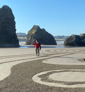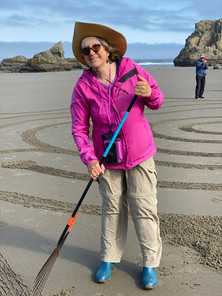 Walking with a group of people you have never met can feel a little unsettling at times but walking a labyrinth on the beach has a way of calming the nerves and easing the soul. Over the last four days it was wonderful to see strangers smile at each other as they made their way through the spiral turns. Watching a child's glee as they discover a mermaid hidden in a rocky cubbyhole was heartwarming. Veteran labyrinth walkers noticed how other people (and sometimes their dogs) were experiencing the route. Many people were surprised by a sense of being connected to everyone on the path even though they did not know anyone's name. Volunteer rakers naturally struck up conversations with the other groomers around them and before long they were comparing notes about their travels and hometowns.
